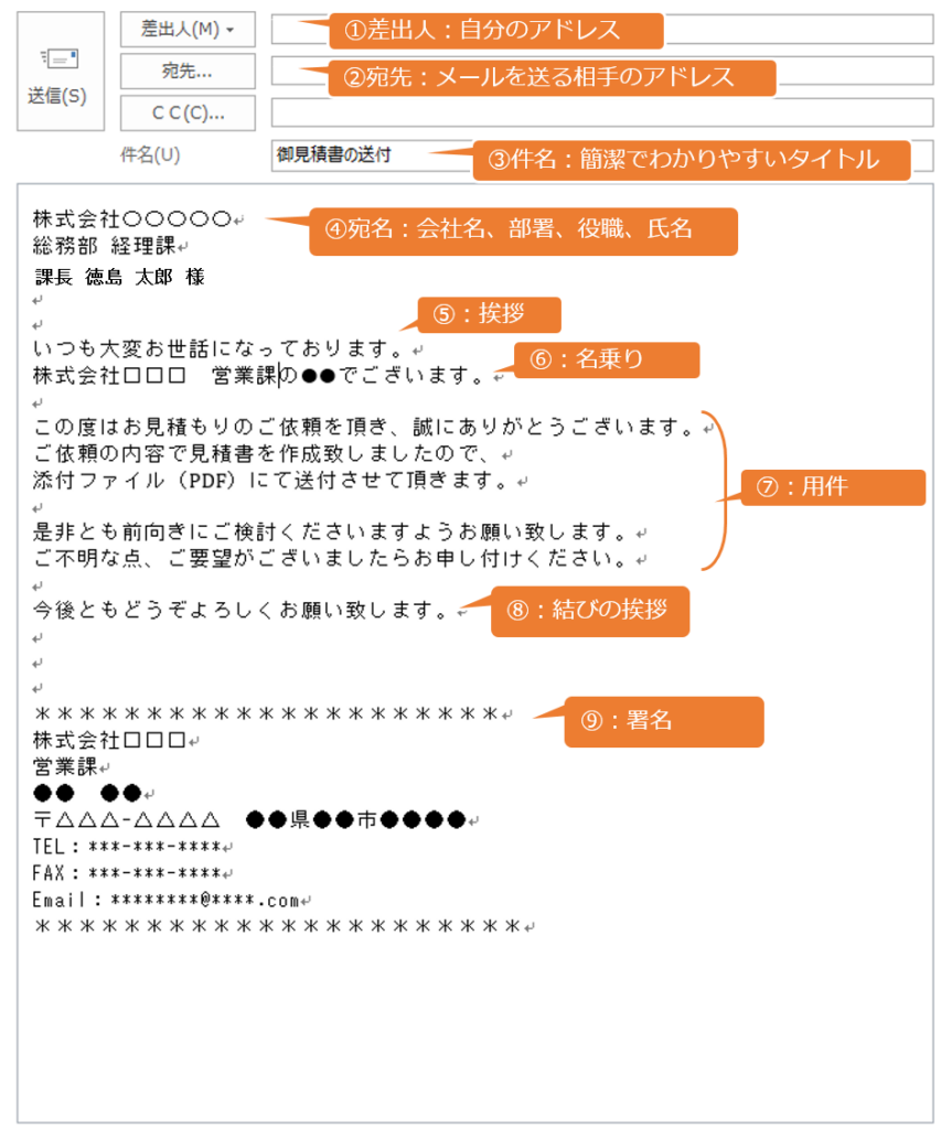 この基本の型を意識してメールを作成すれば、バッチリです♪