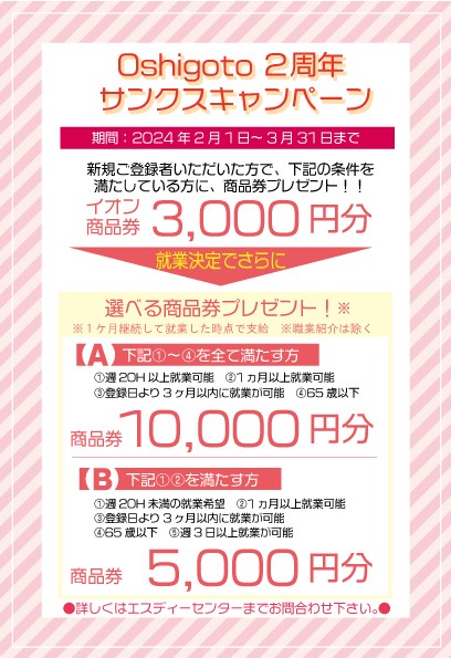 Oshigoto2周年サンクスキャンペーン【2024年2月1日~3月31日】